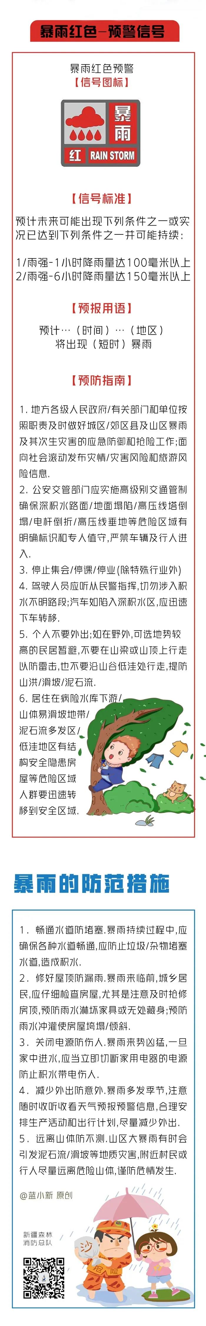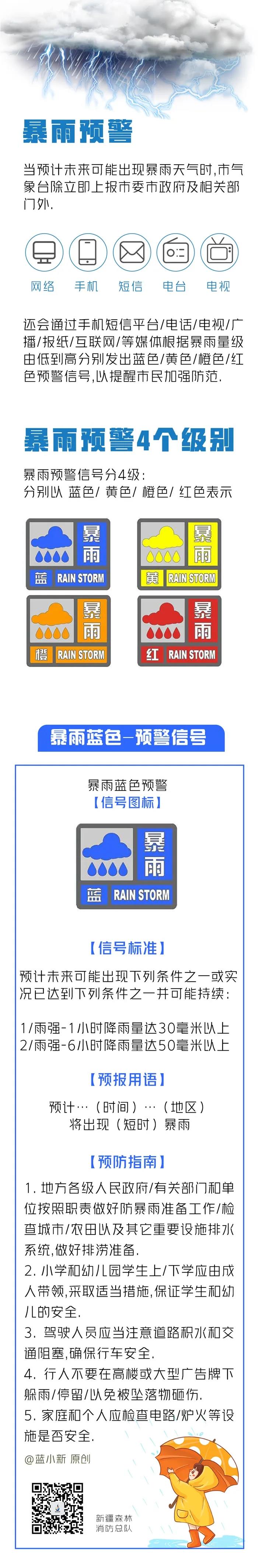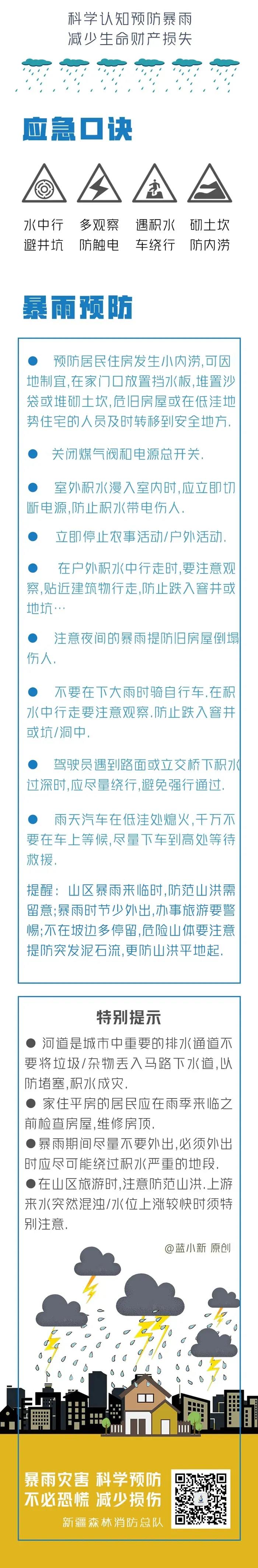 夏季是暴雨的多發(fā)季節(jié),近期,又一波強降水來襲!安徽、湖北、湖南、重慶、貴州、浙江等地有大到暴雨,致災性強。新疆森林消防總隊提醒廣大公眾關(guān)注天氣變化,及時調(diào)整出行時間,學習掌握暴雨防范和自救知識,科學應對,安全度汛!