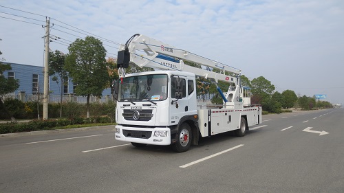 國六東風多利卡22米高空作業車(JDF5110JGK22E6),采用東風汽車股份有限公司生產的EQ1165LJ9CDE底盤改裝而成,搭配國六東風康明斯B6.2NS6B210柴油發動機,200馬力,六缸,功率為154KW。駕駛室為平頭單排,可乘坐3人,內飾和儀表臺提檔升級,更舒適和美觀。該車最大作業高度22m,最大作業幅度9.6m;臂架形式為三節折臂, 支腿型式為前后H型。